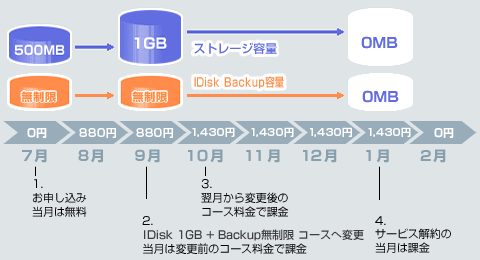 *1 バックアップ専用のコースです。ストレージ容量はつきませんのでご注意ください *2 Macでは、IDisk Backup容量をお使いいただけません。 ※IDisk100 スペシャルコースの提供は終了しております。